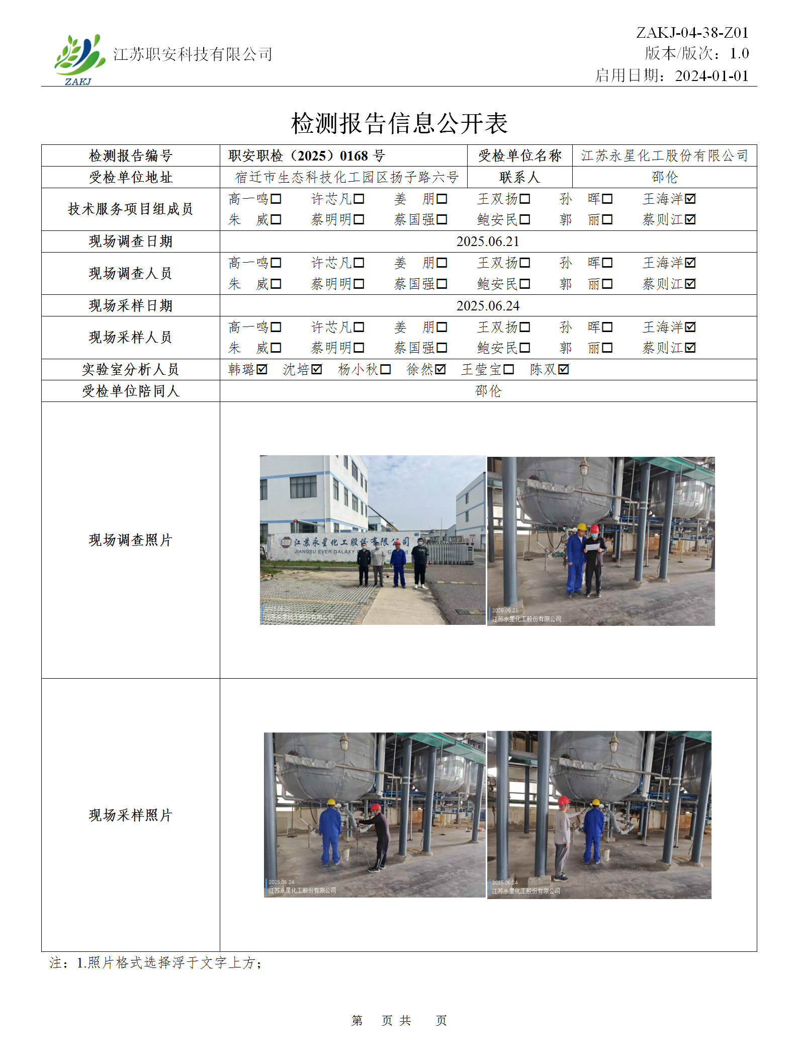 檢測報告公示