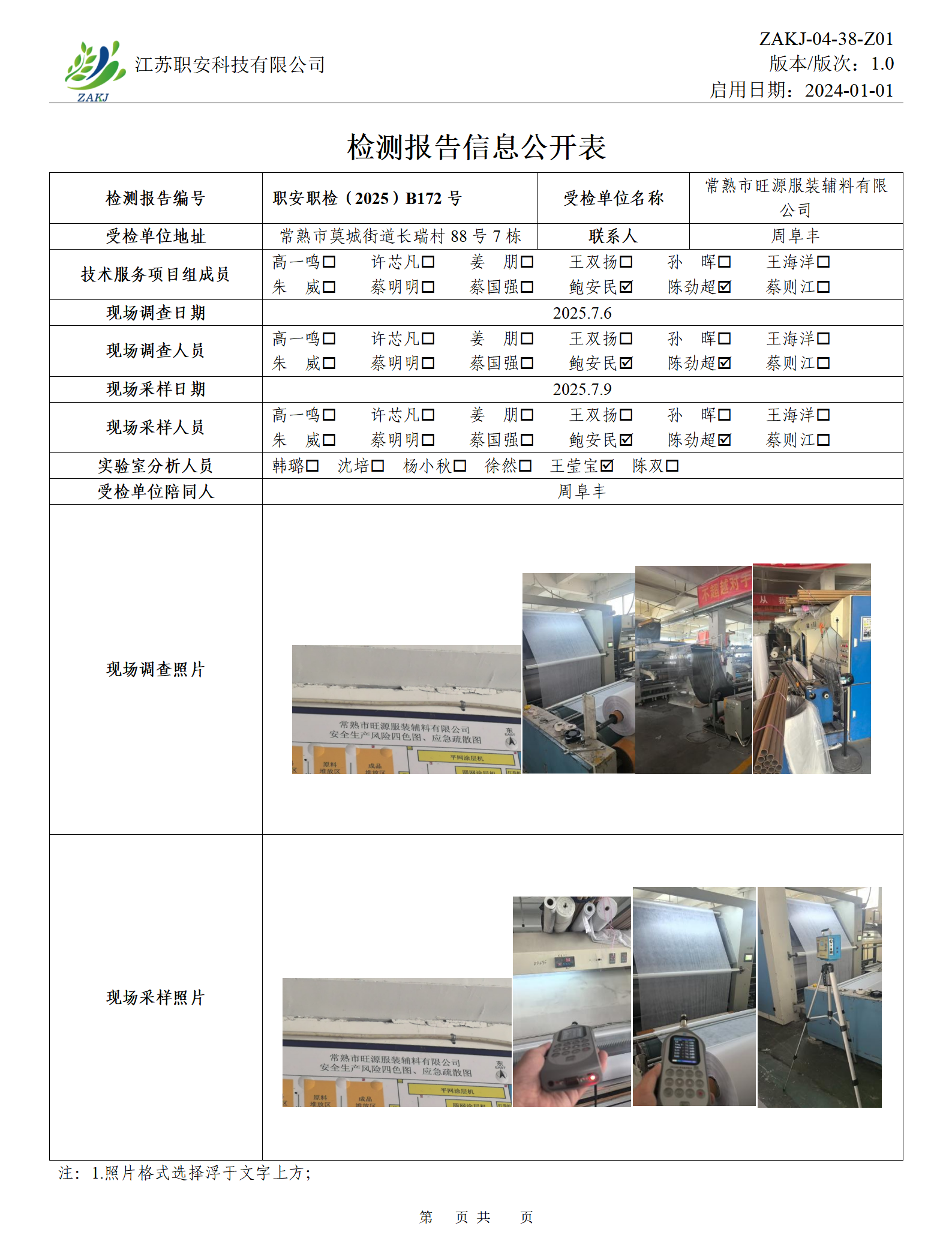 檢測報告公示