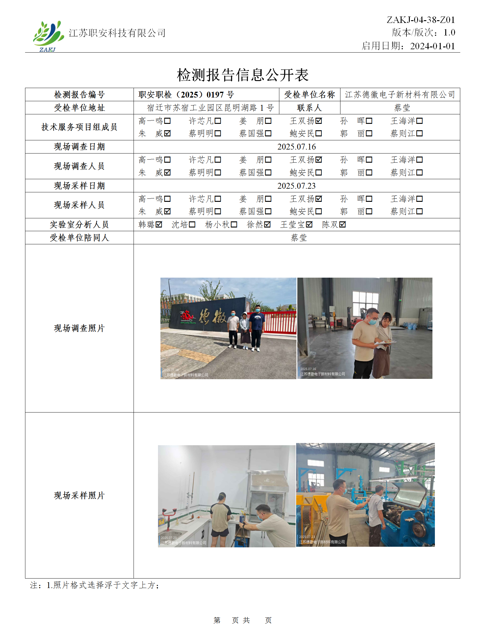 檢測報告公示
