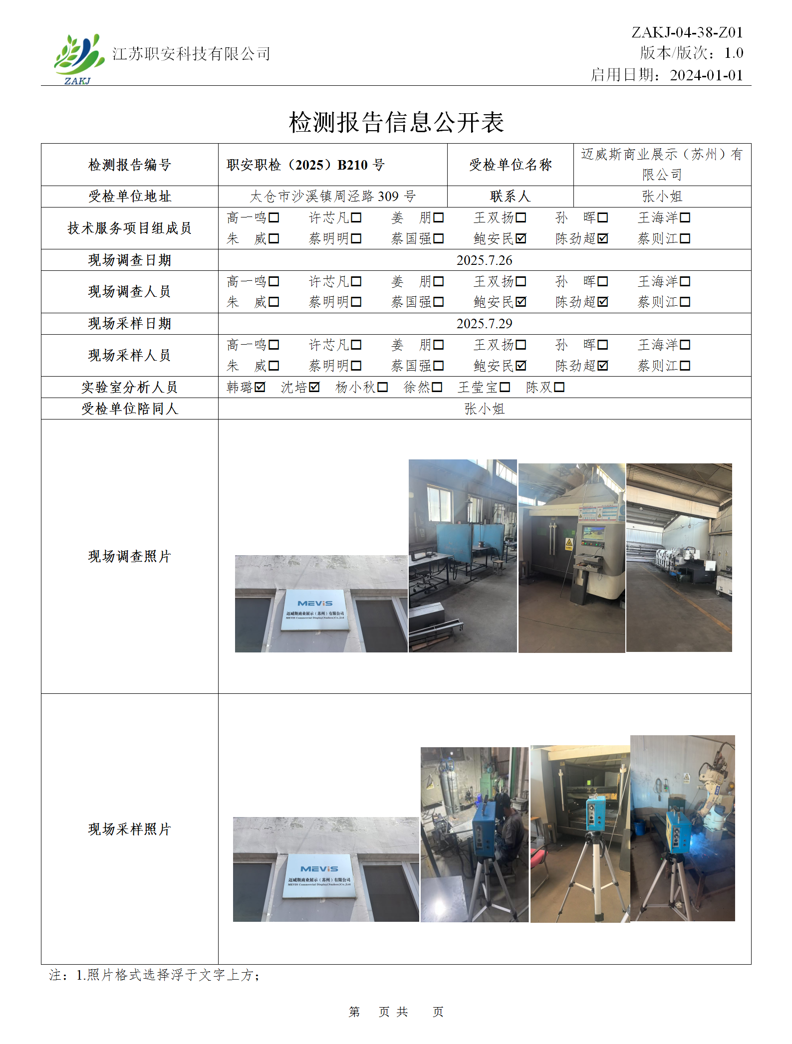 檢測報告公示