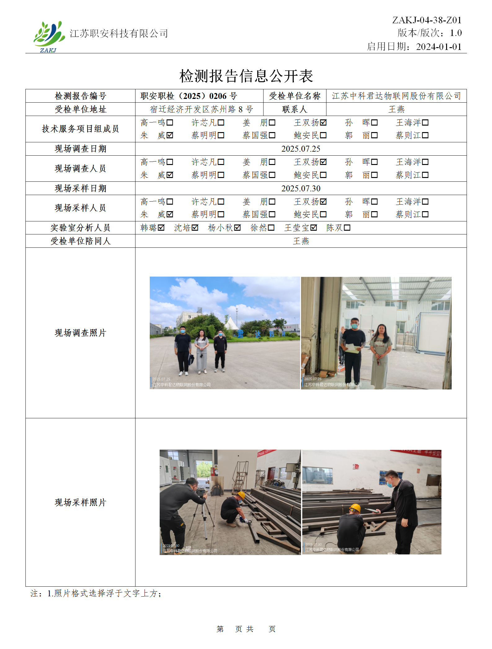 檢測報告公示
