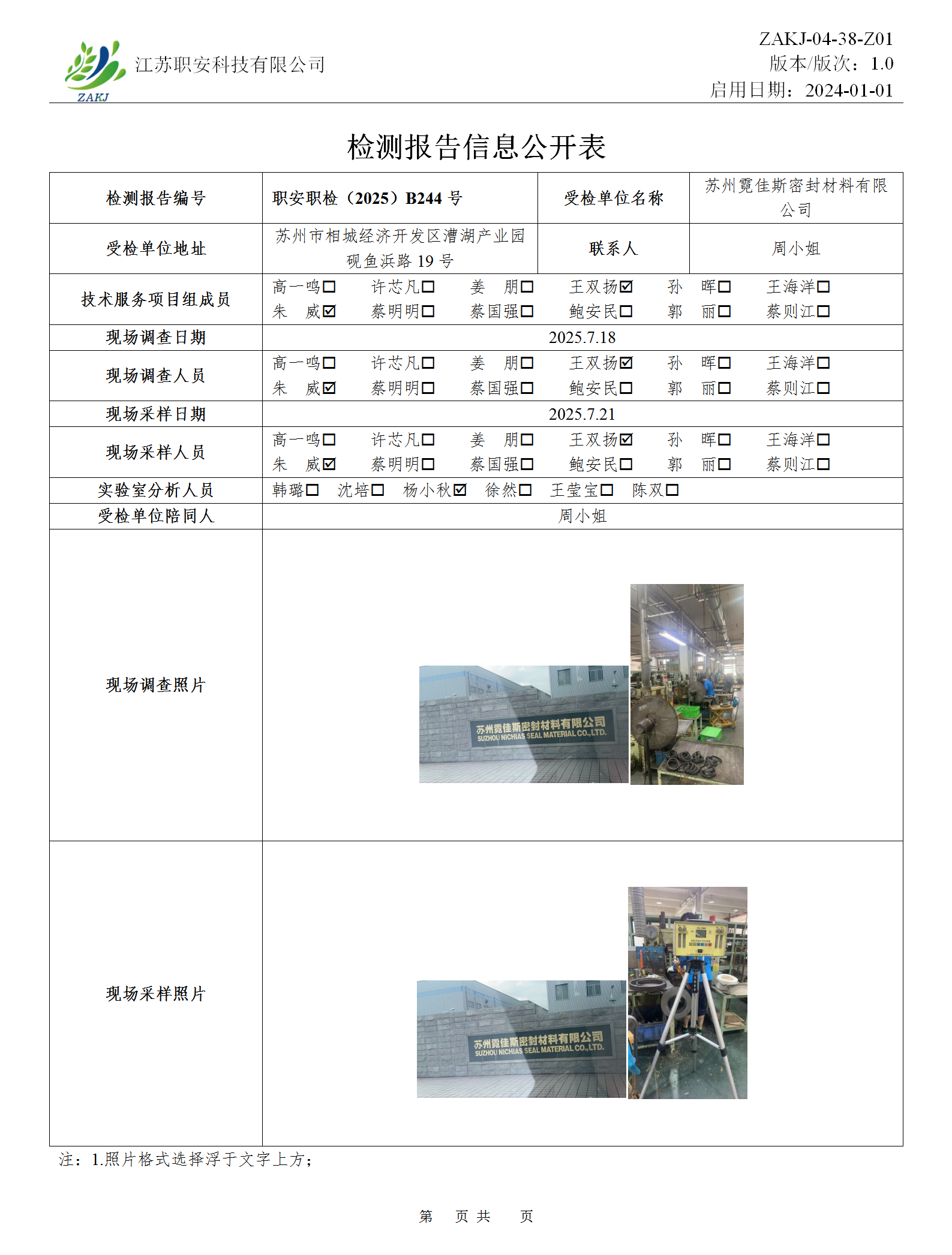 檢測報告公示