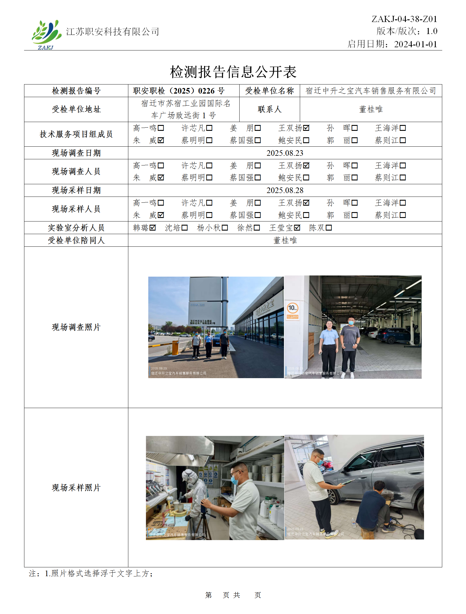 檢測報告公示