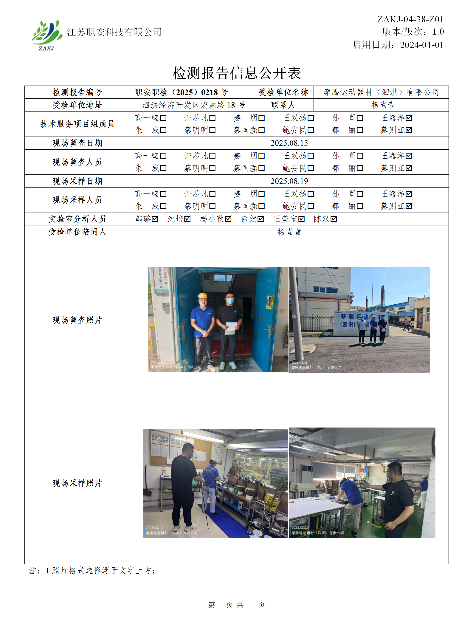 檢測報告公示