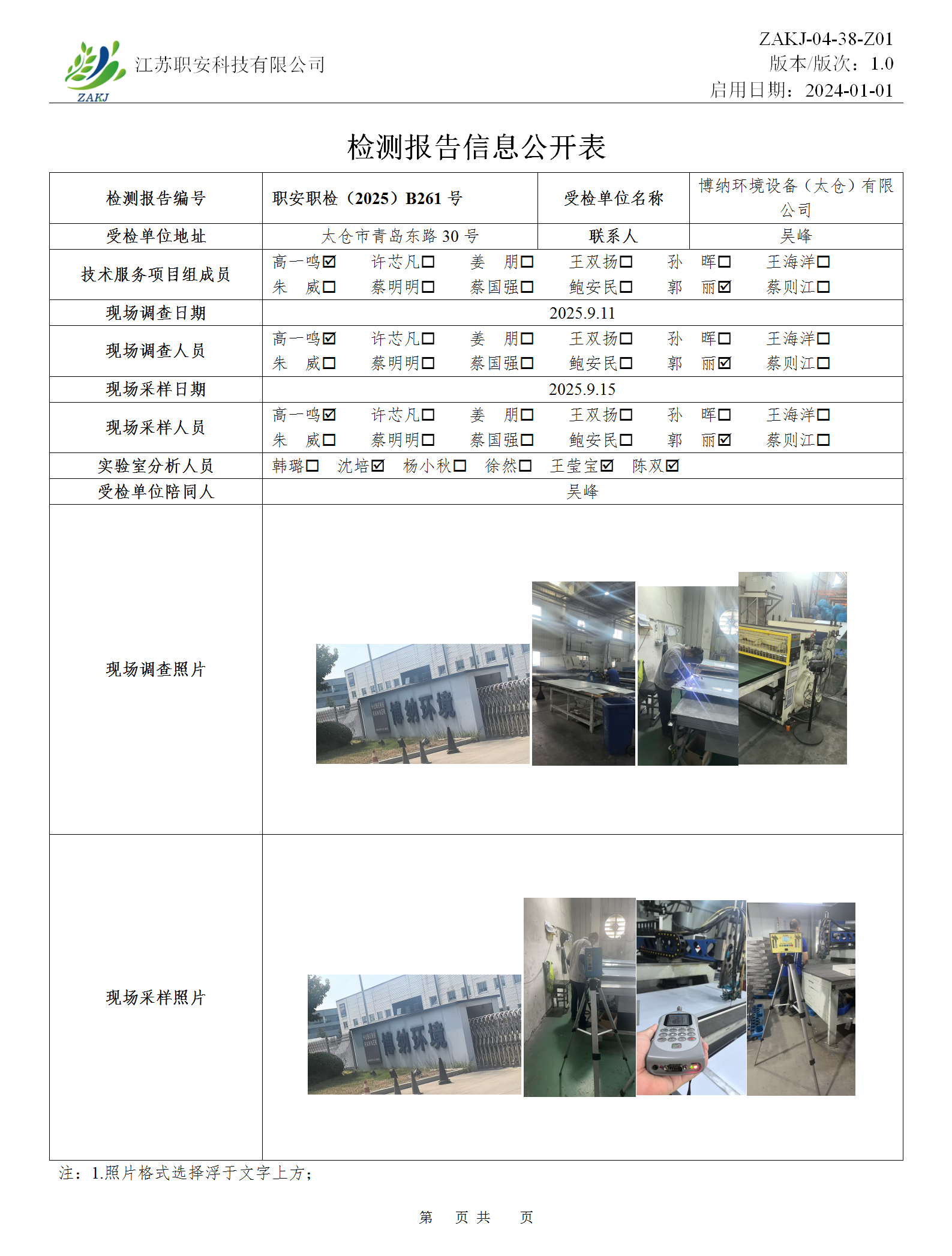 檢測報告公示
