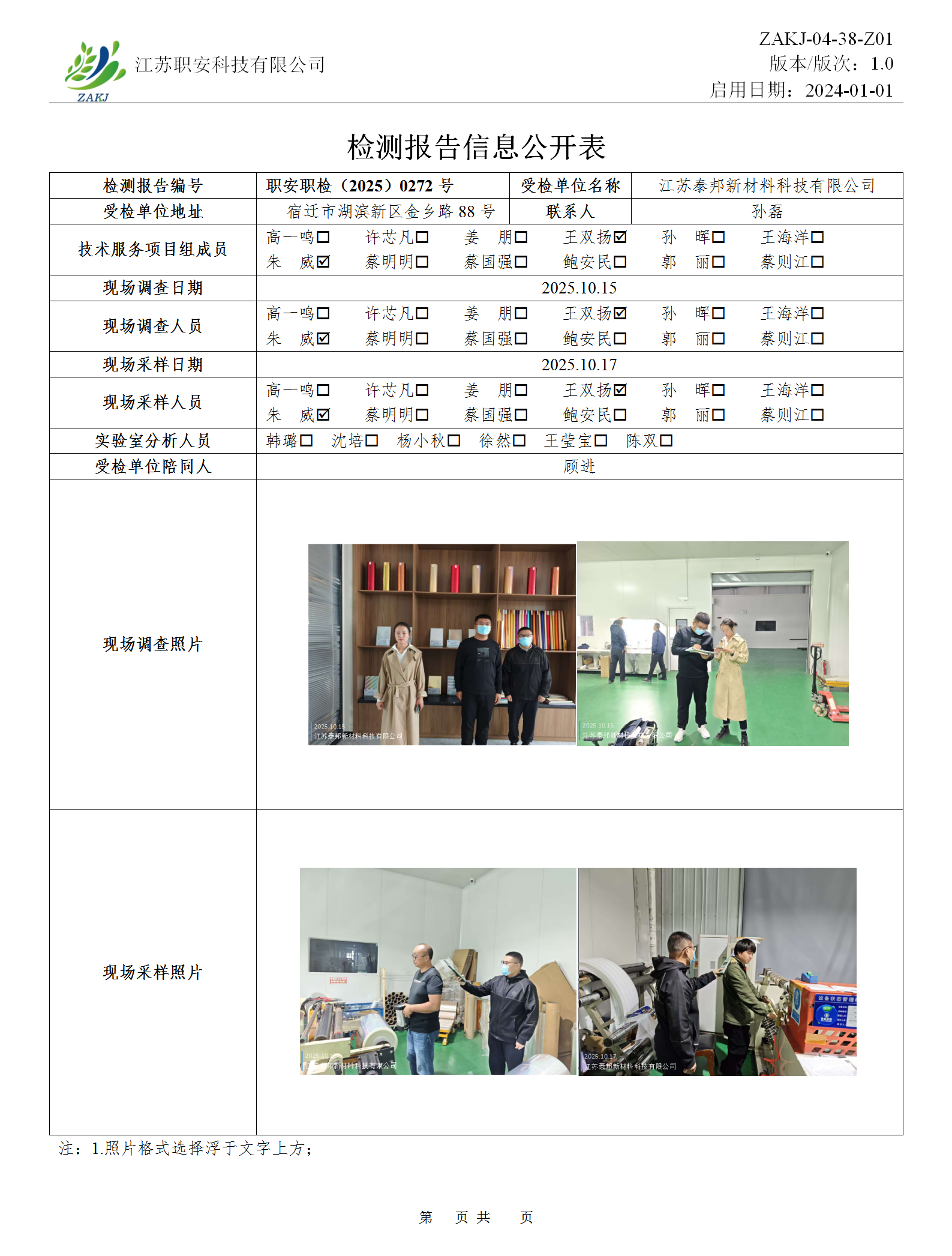檢測報告公示