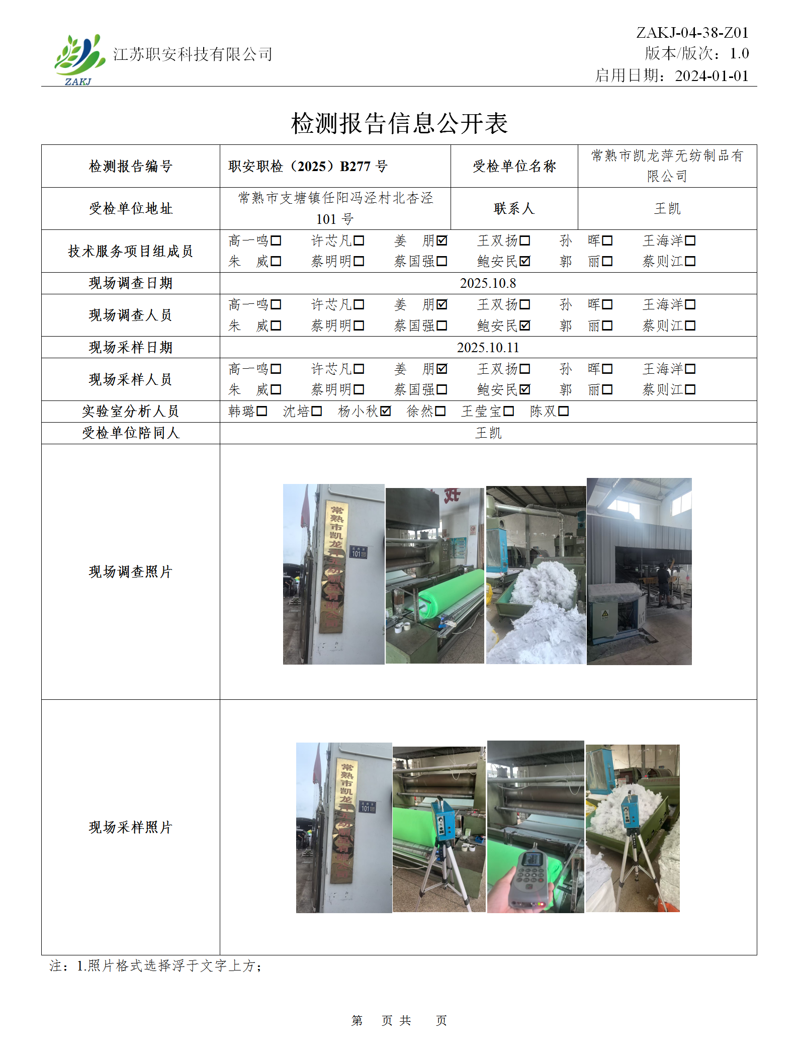 檢測報告公示