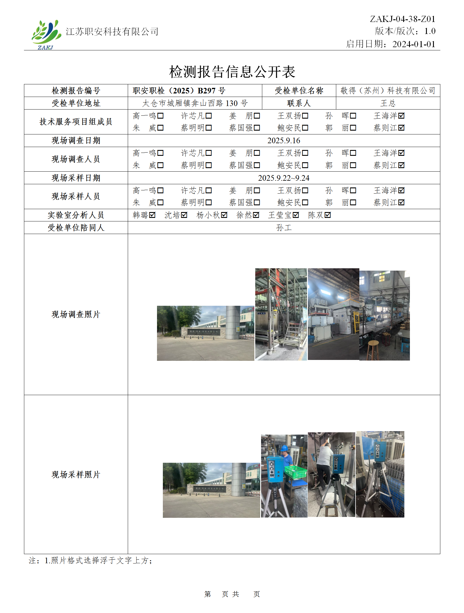 檢測報告公示