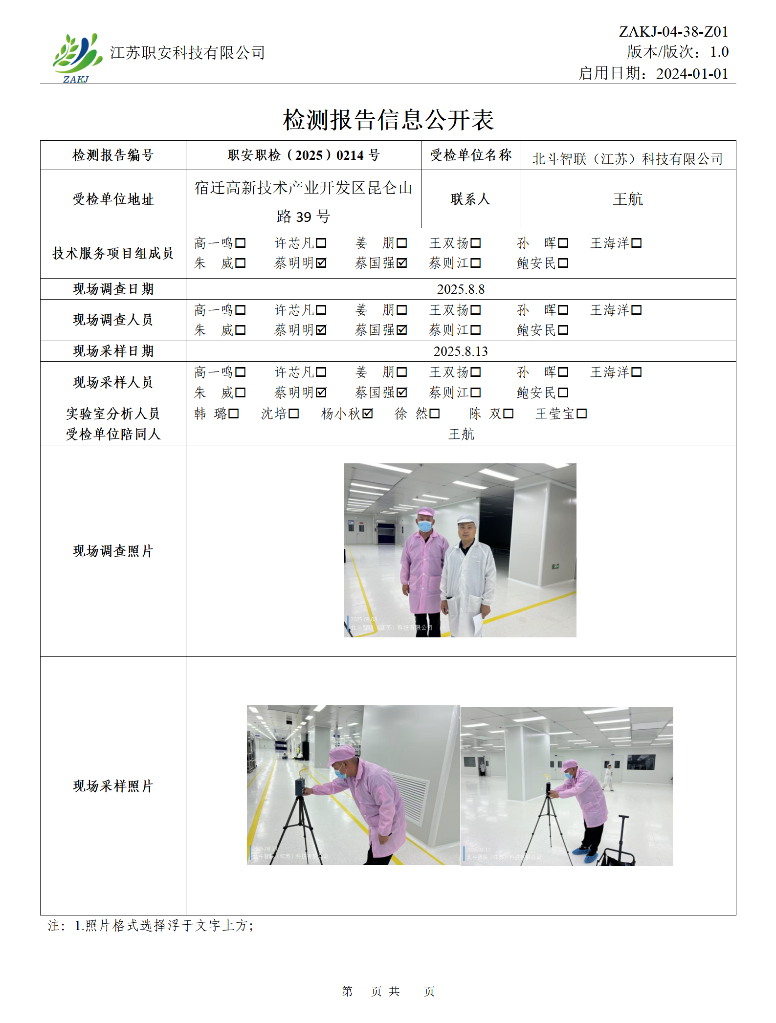 檢測報告公示
