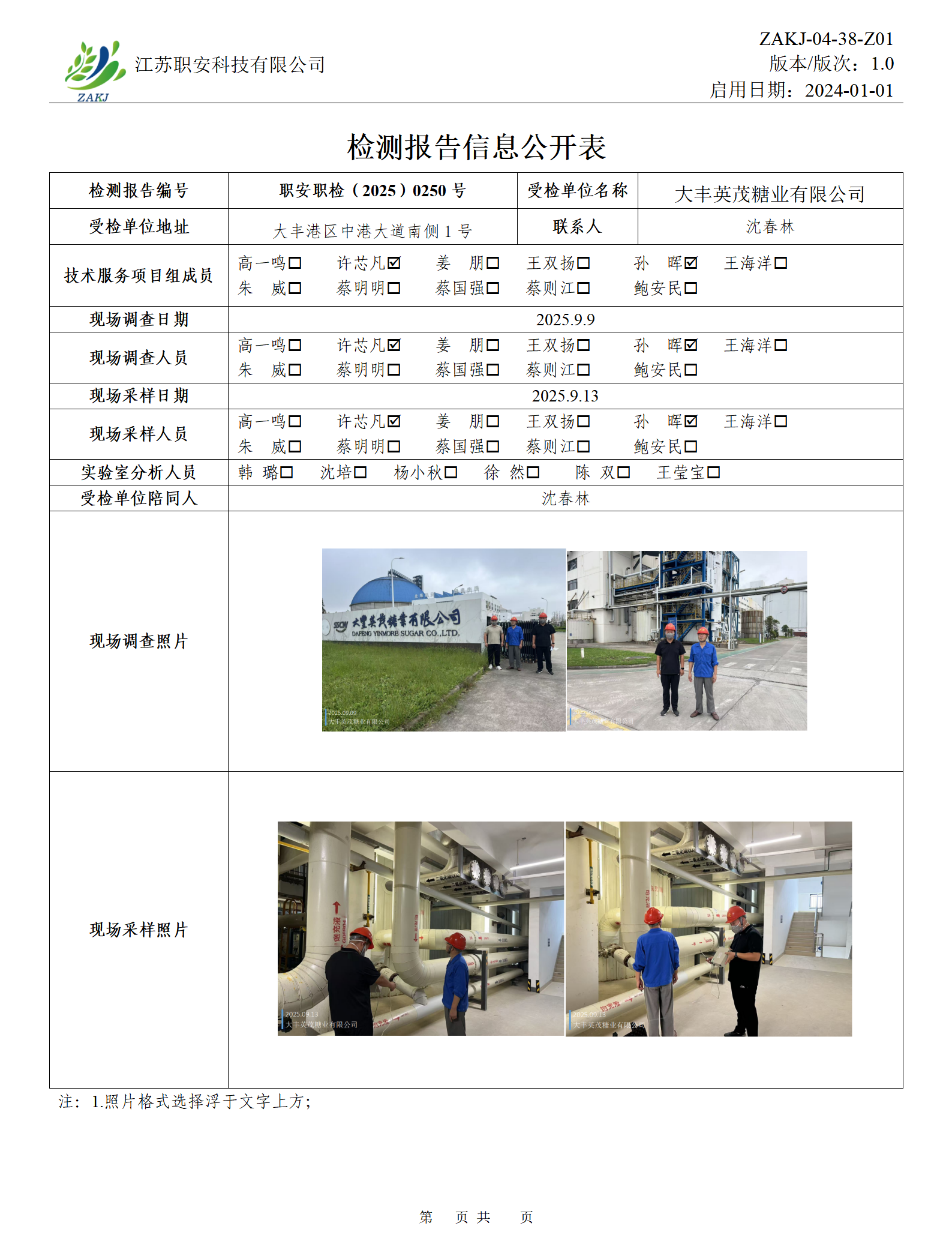 檢測報告公示