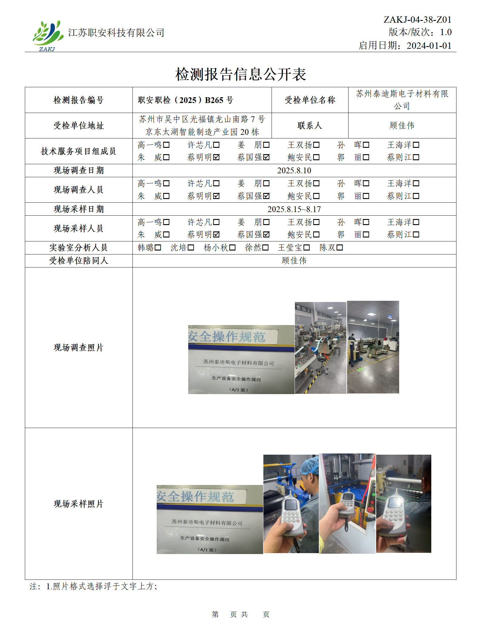 檢測報告公示