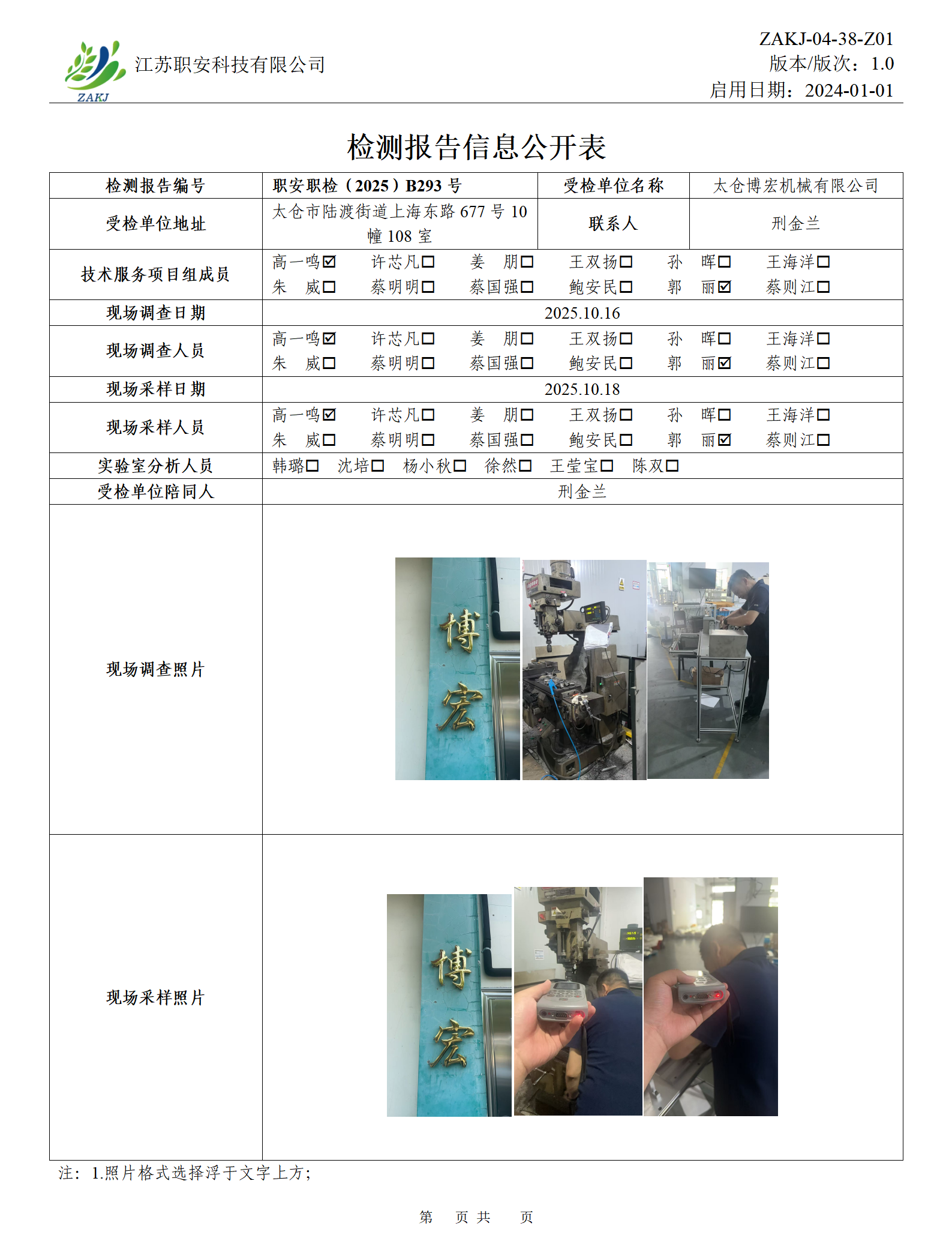檢測報告公示