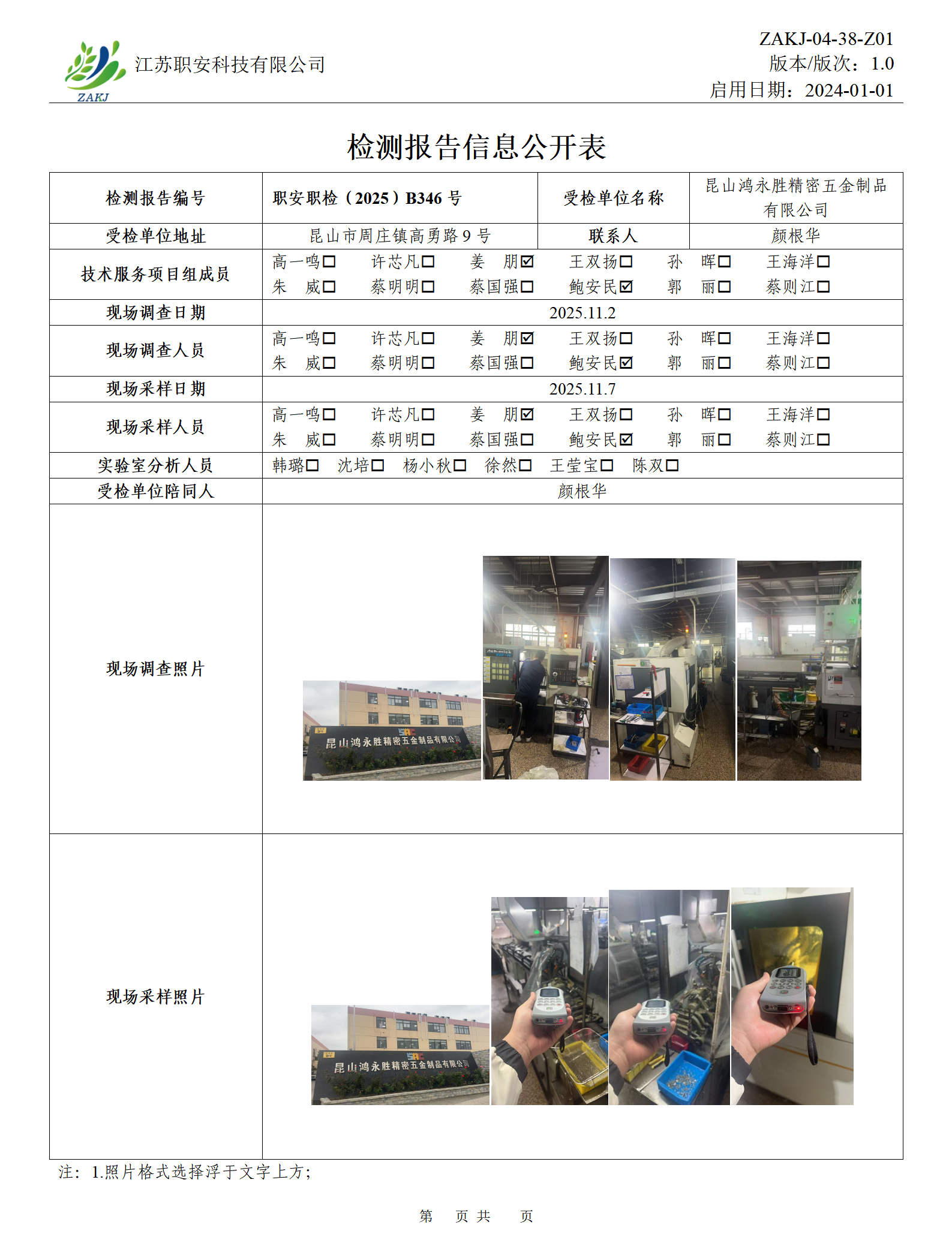 檢測報告公示