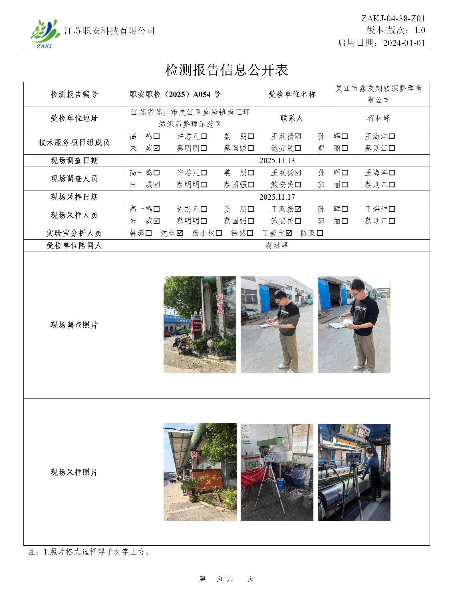 檢測報告公示
