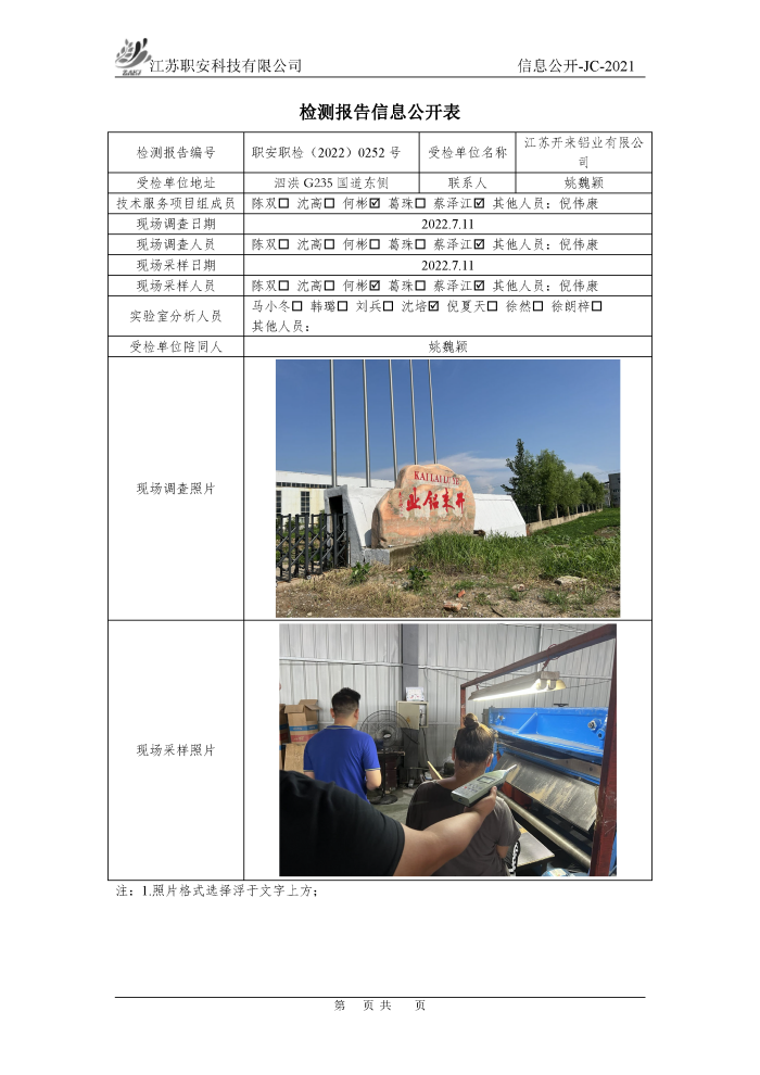 檢測報告公示