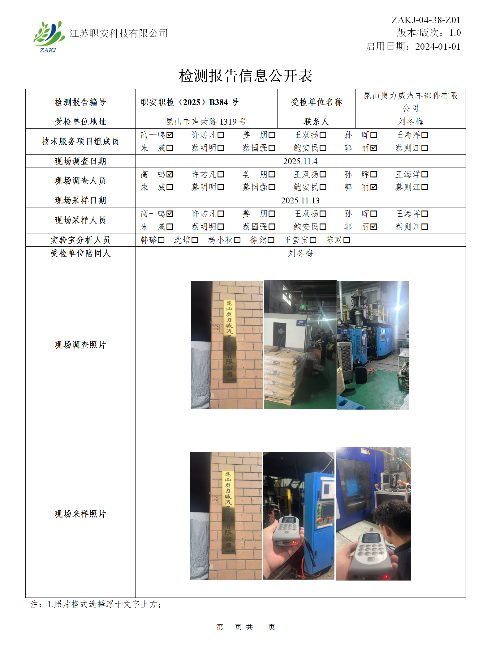 檢測報告公示