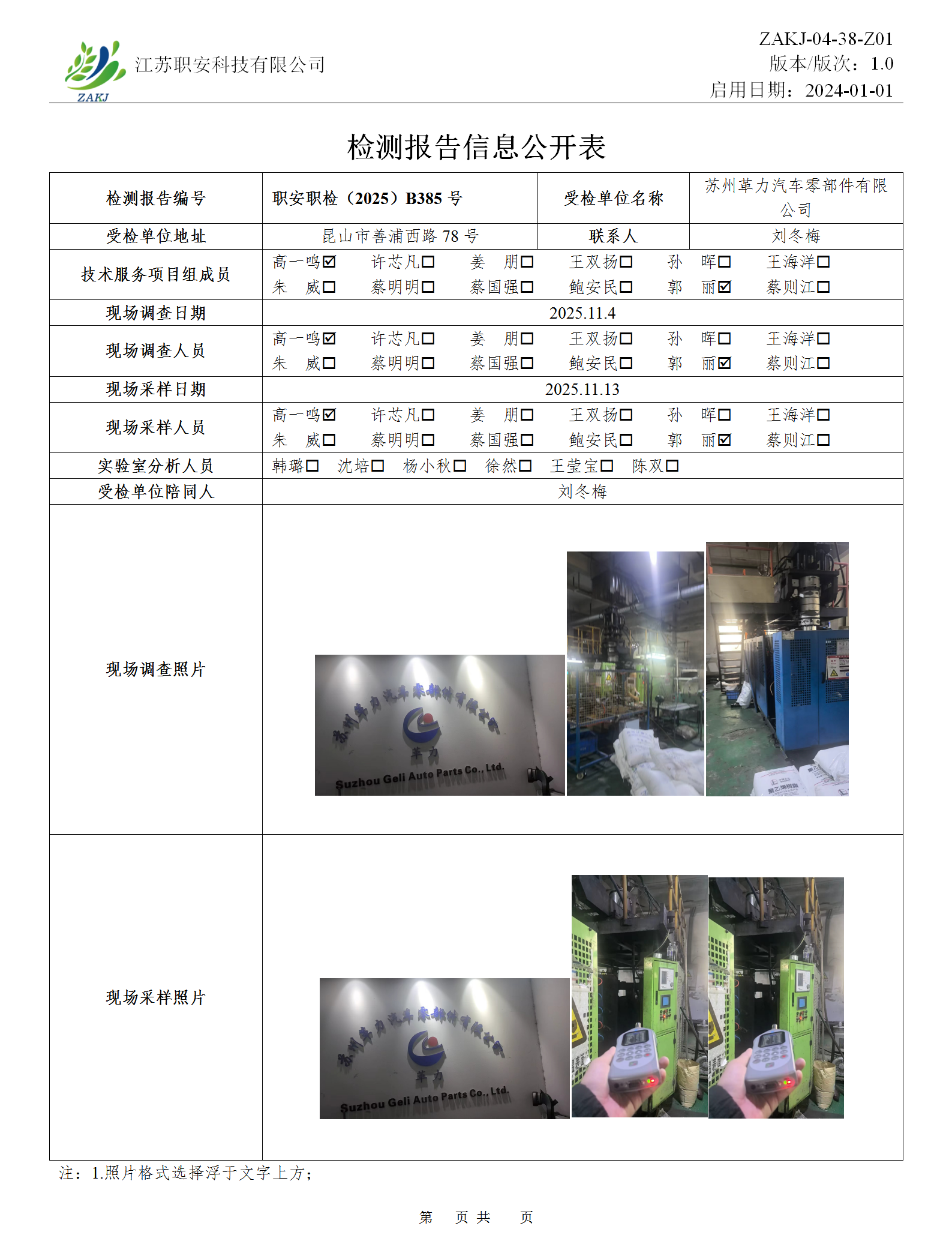 檢測報告公示