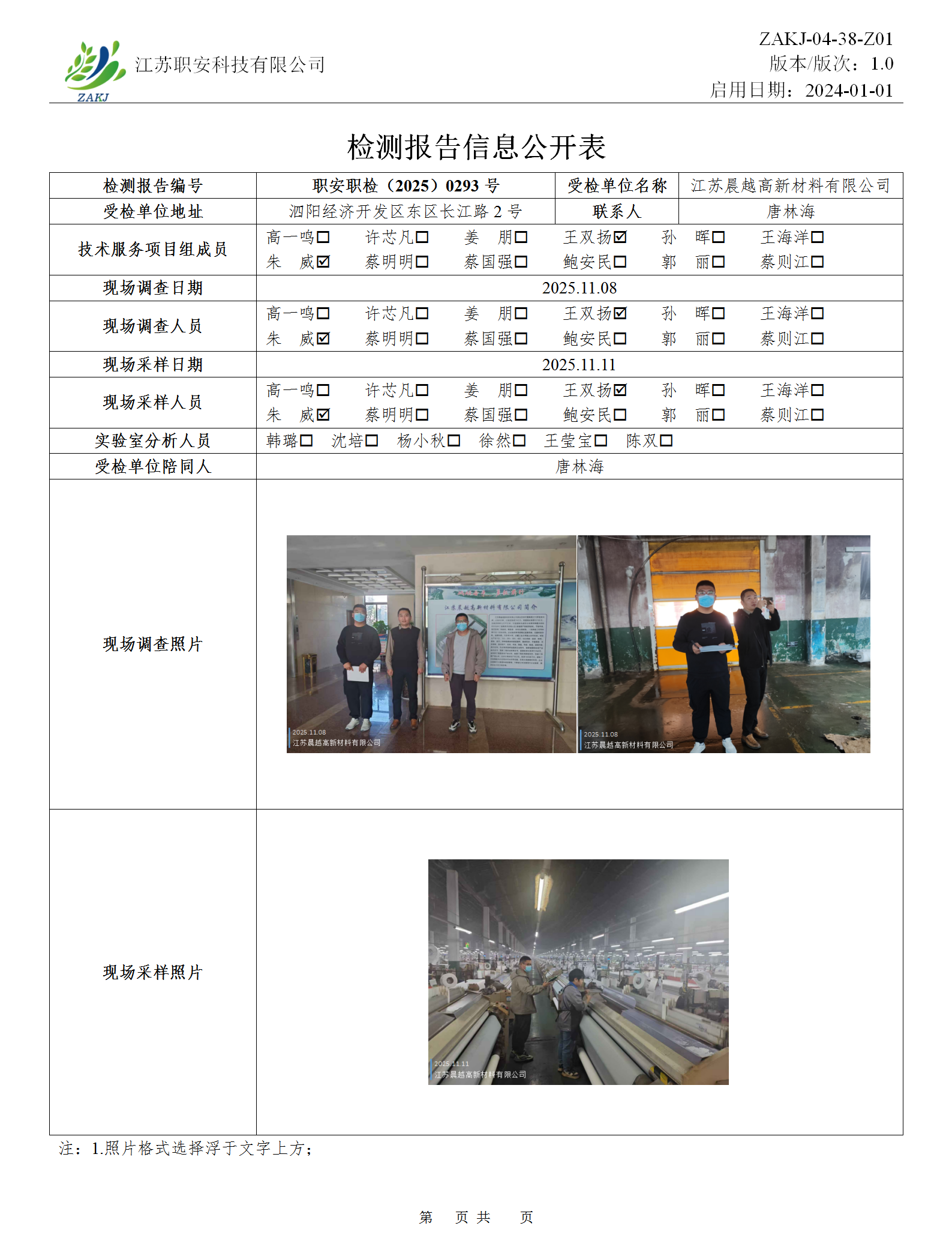 檢測報告公示