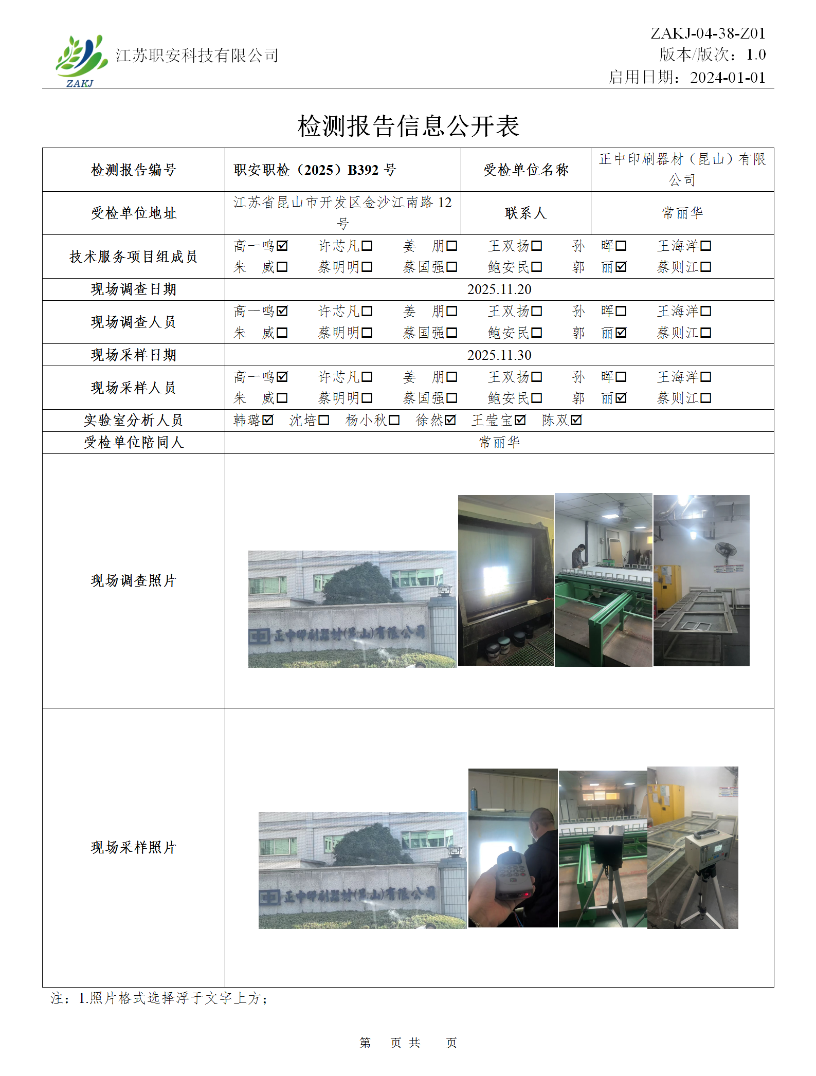 檢測報告公示