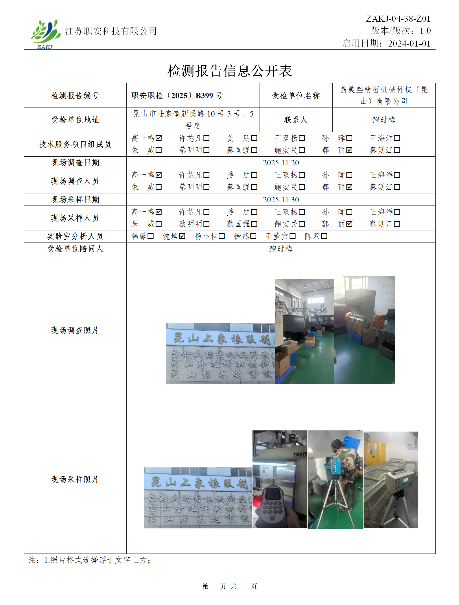 檢測報告公示