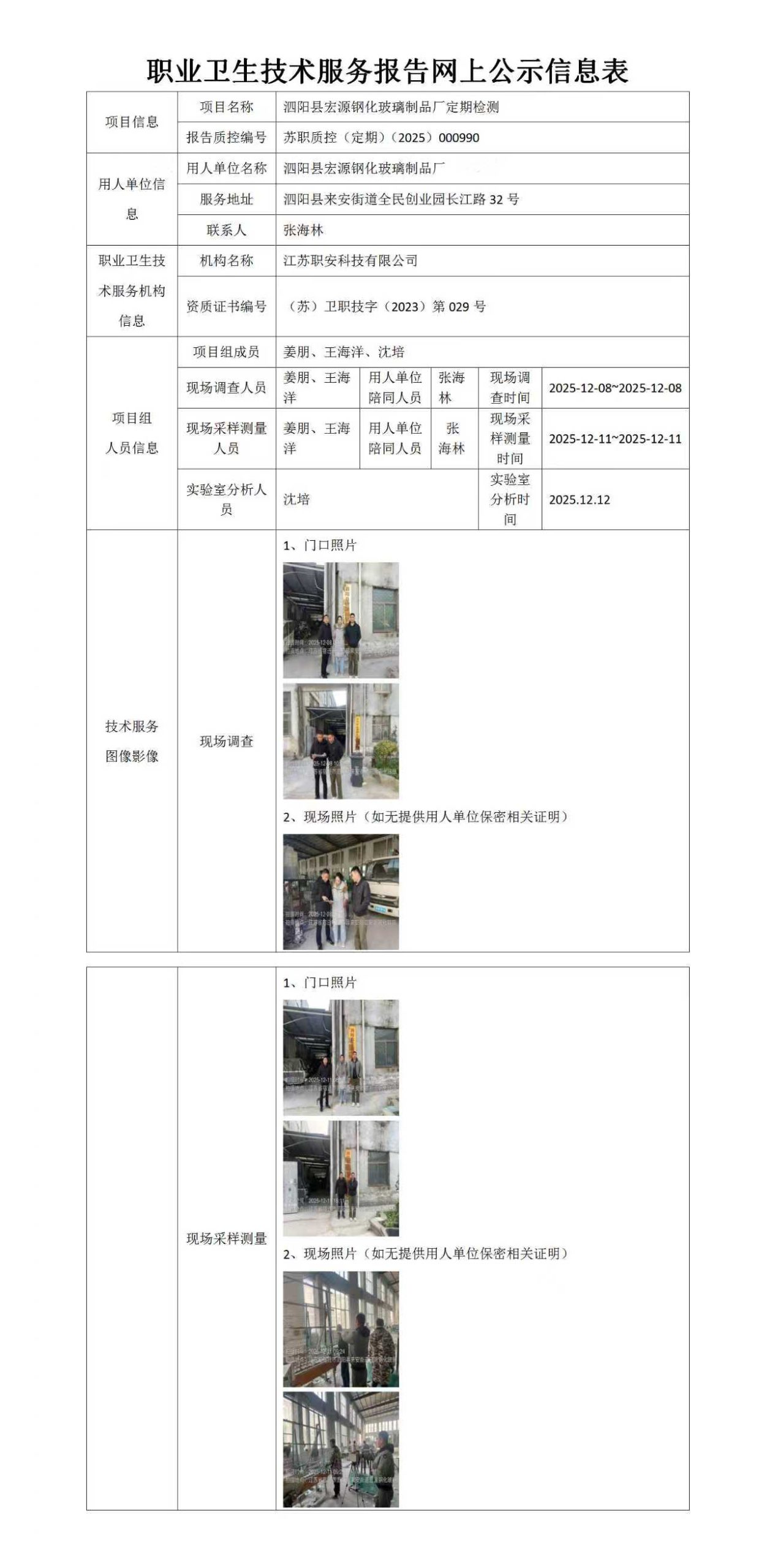 檢測報告公示