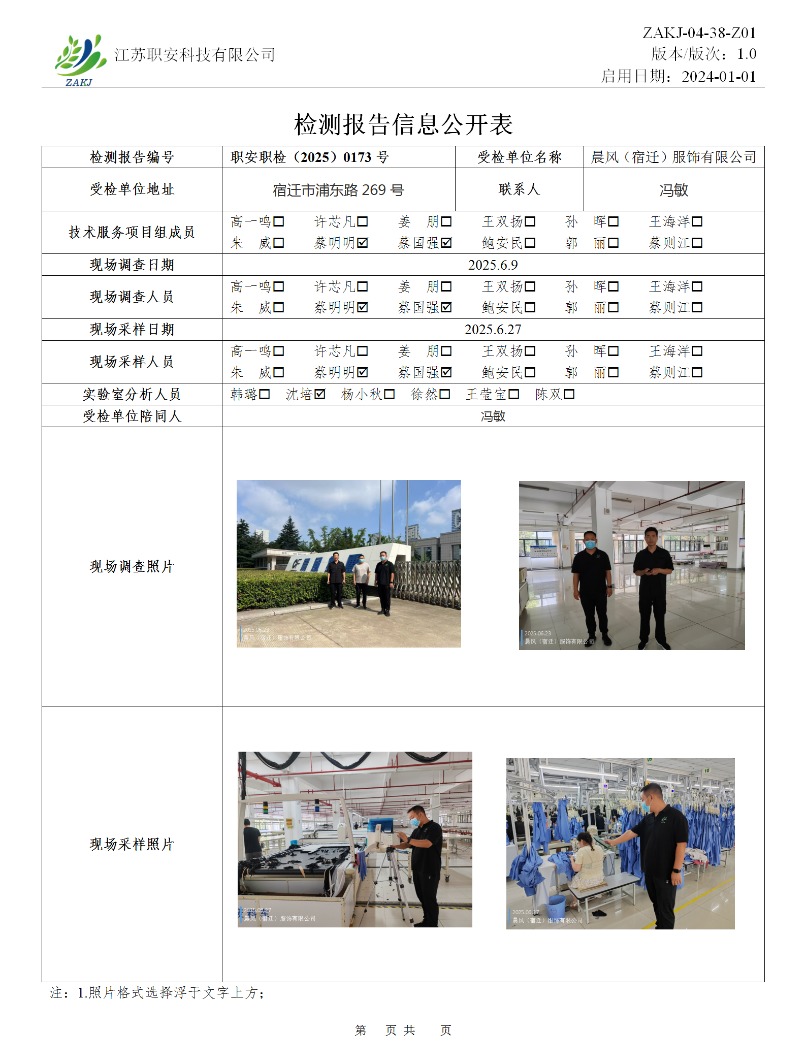 檢測報告公示