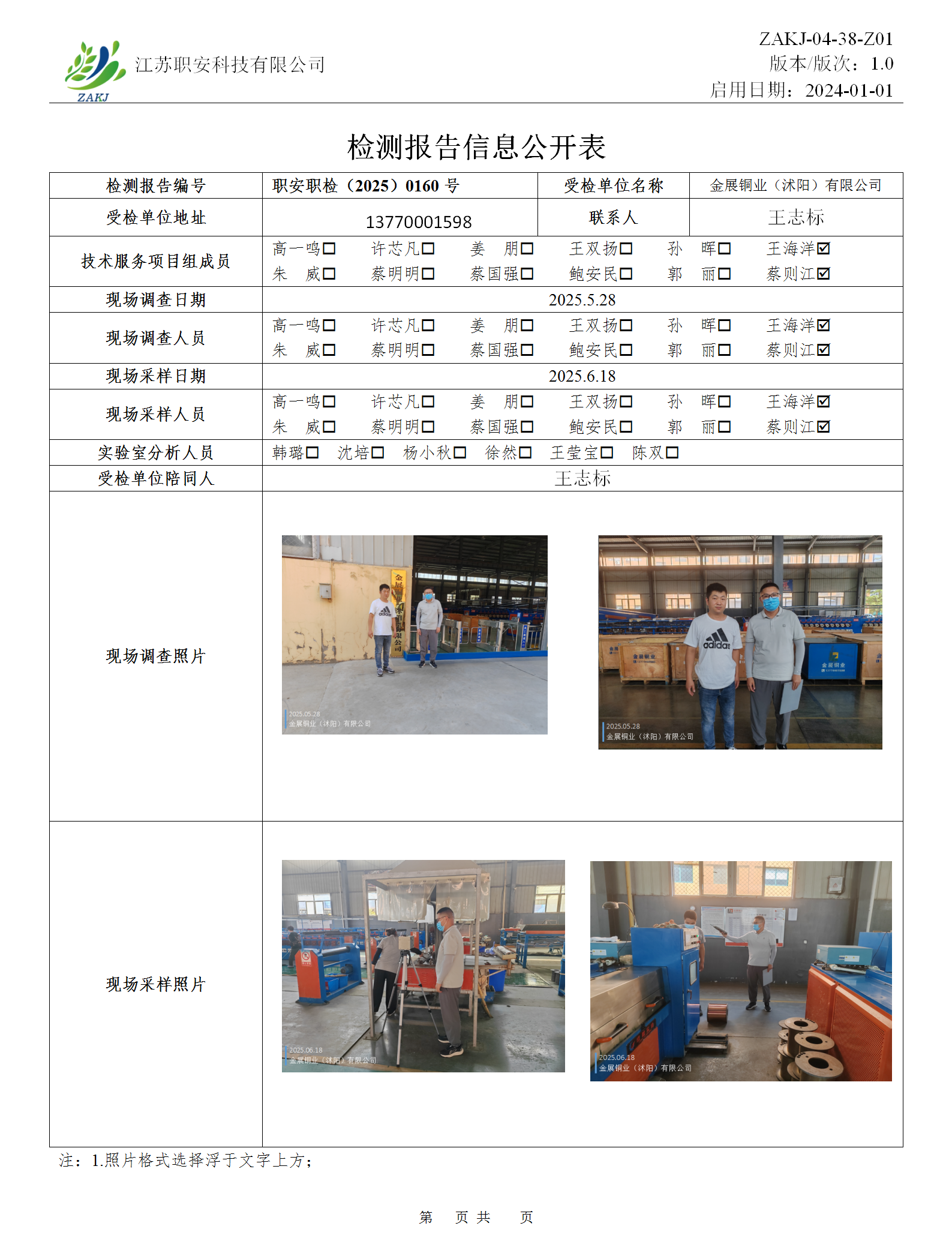 檢測報告公示