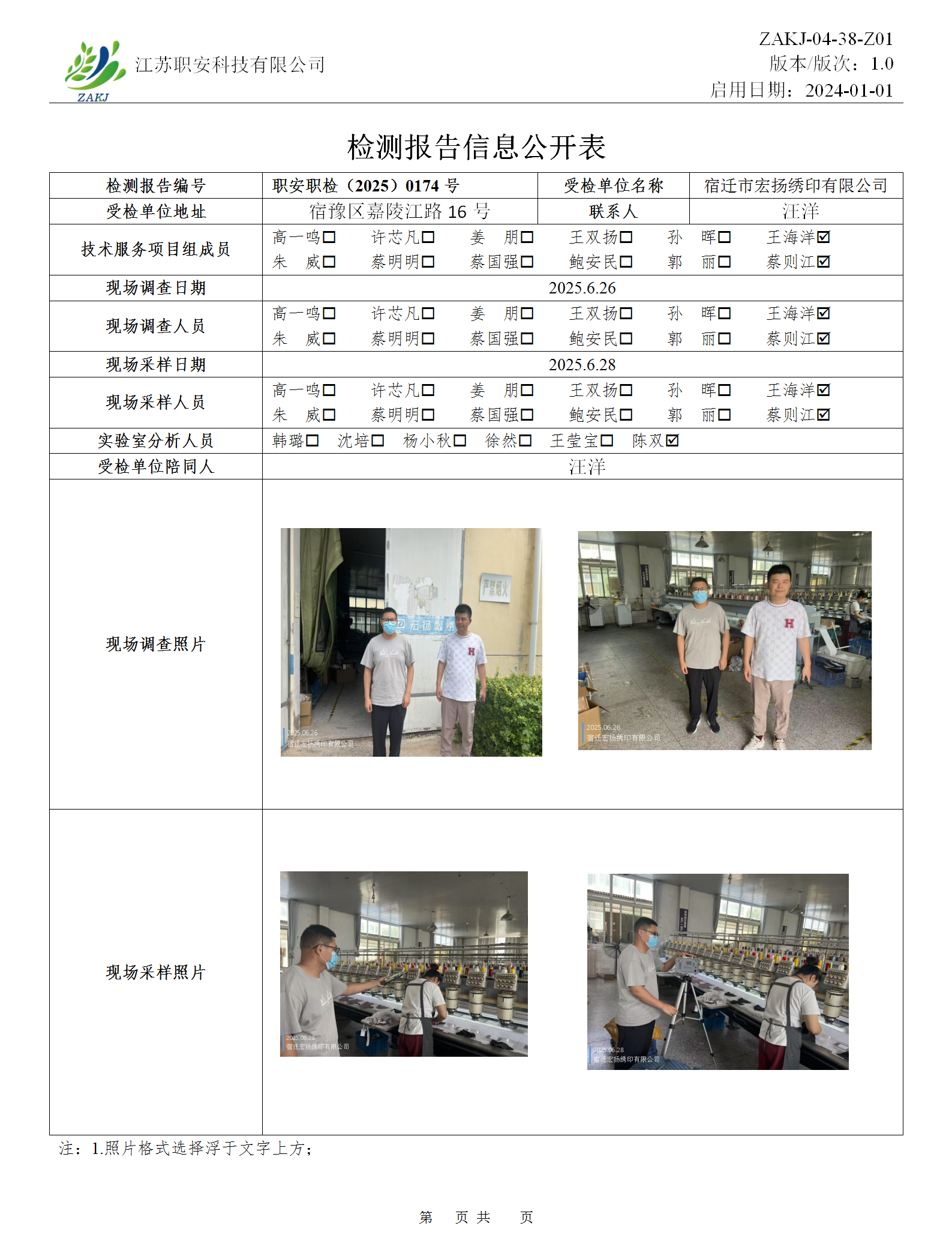檢測報告公示