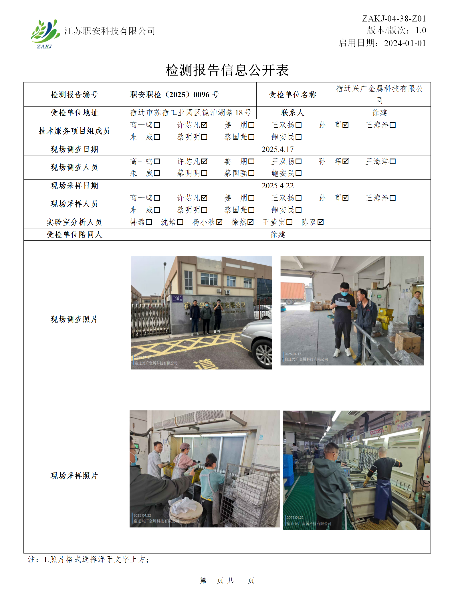 檢測報告公示