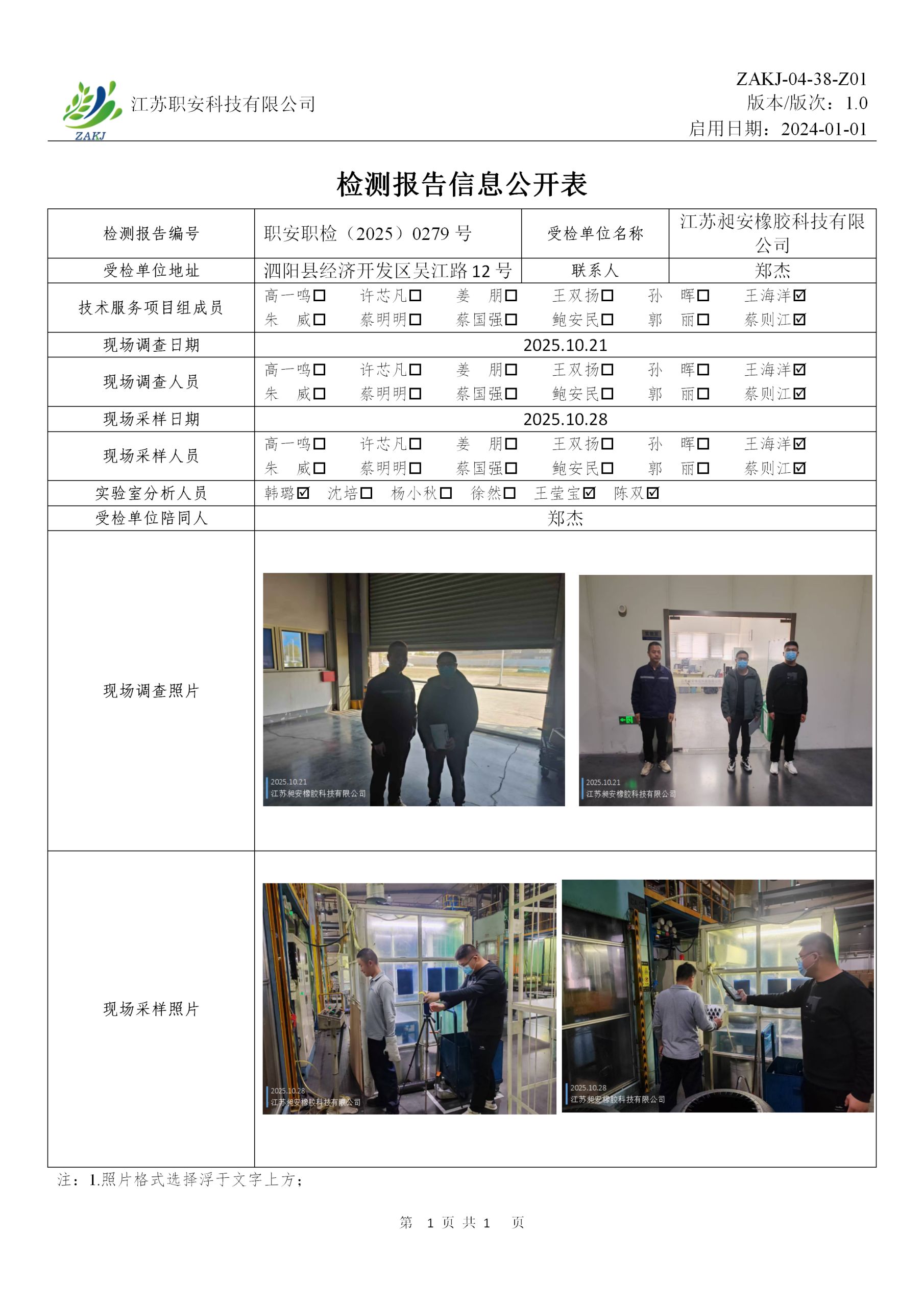 檢測報告公示