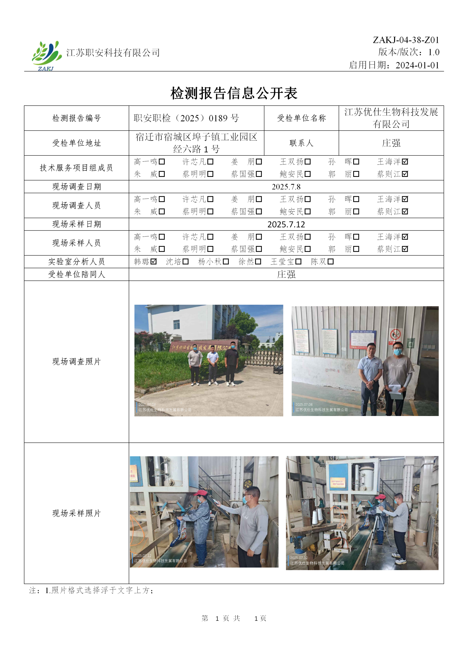檢測報告公示