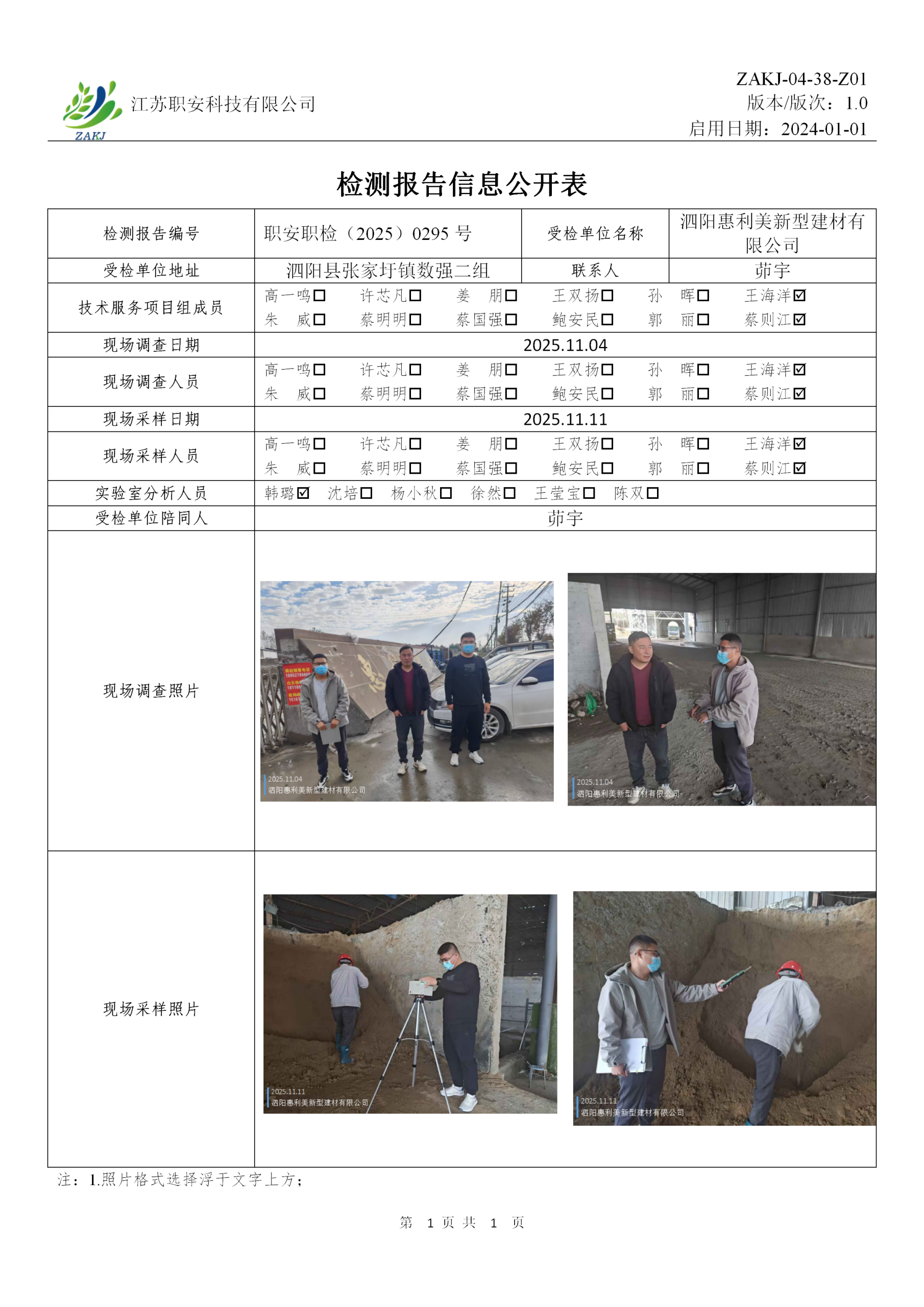 檢測報告公示