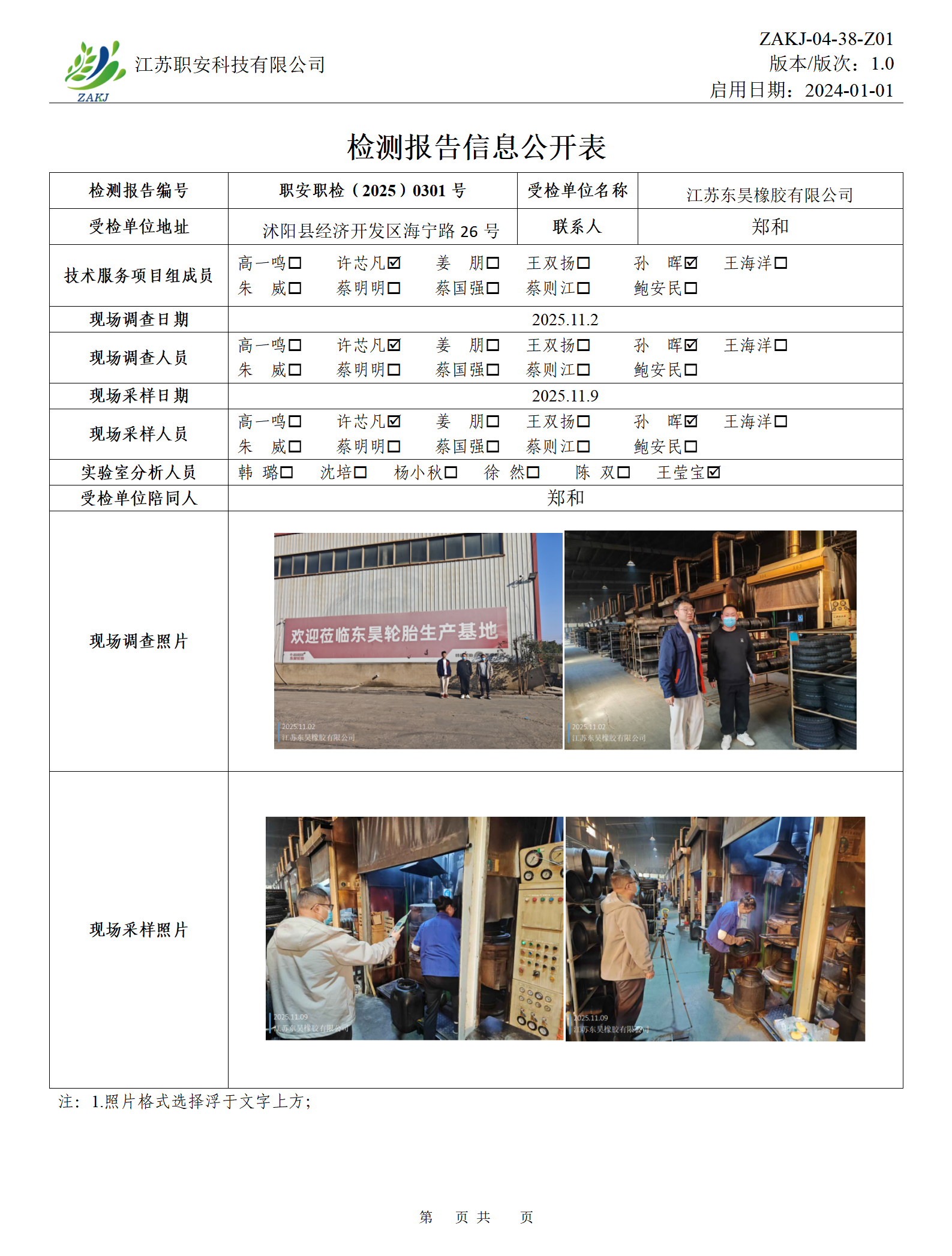 檢測報告公示