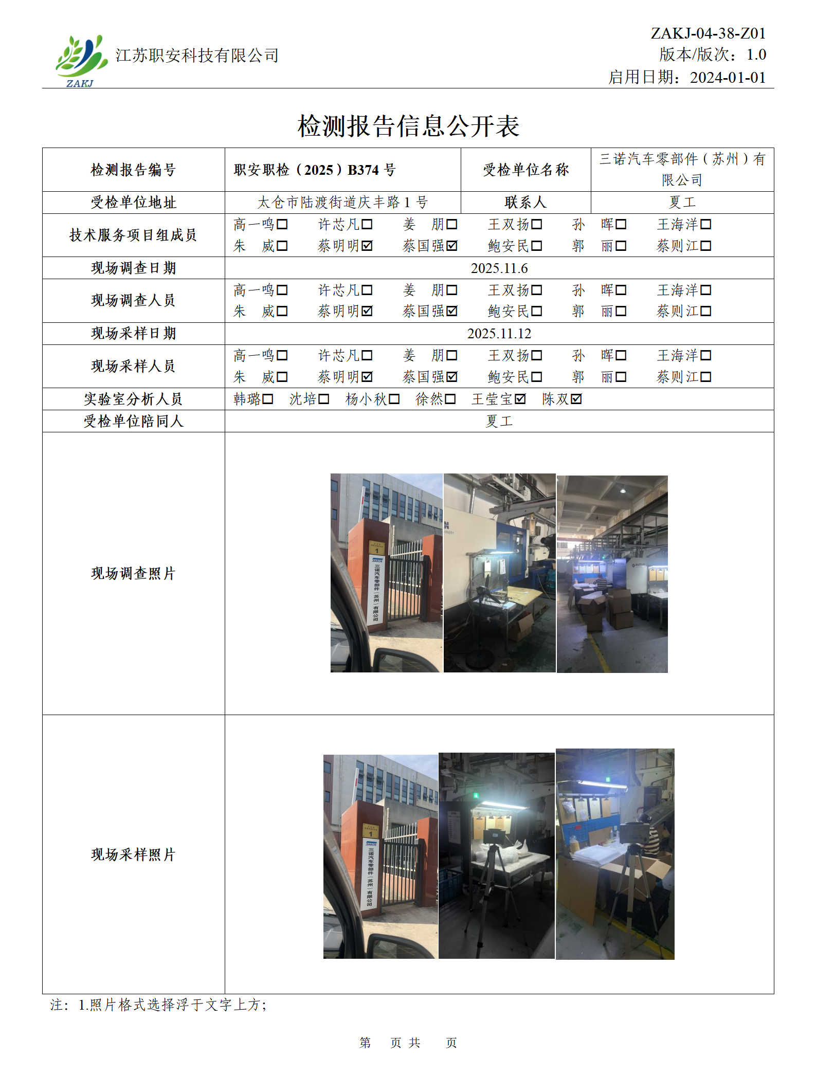 檢測報告公示