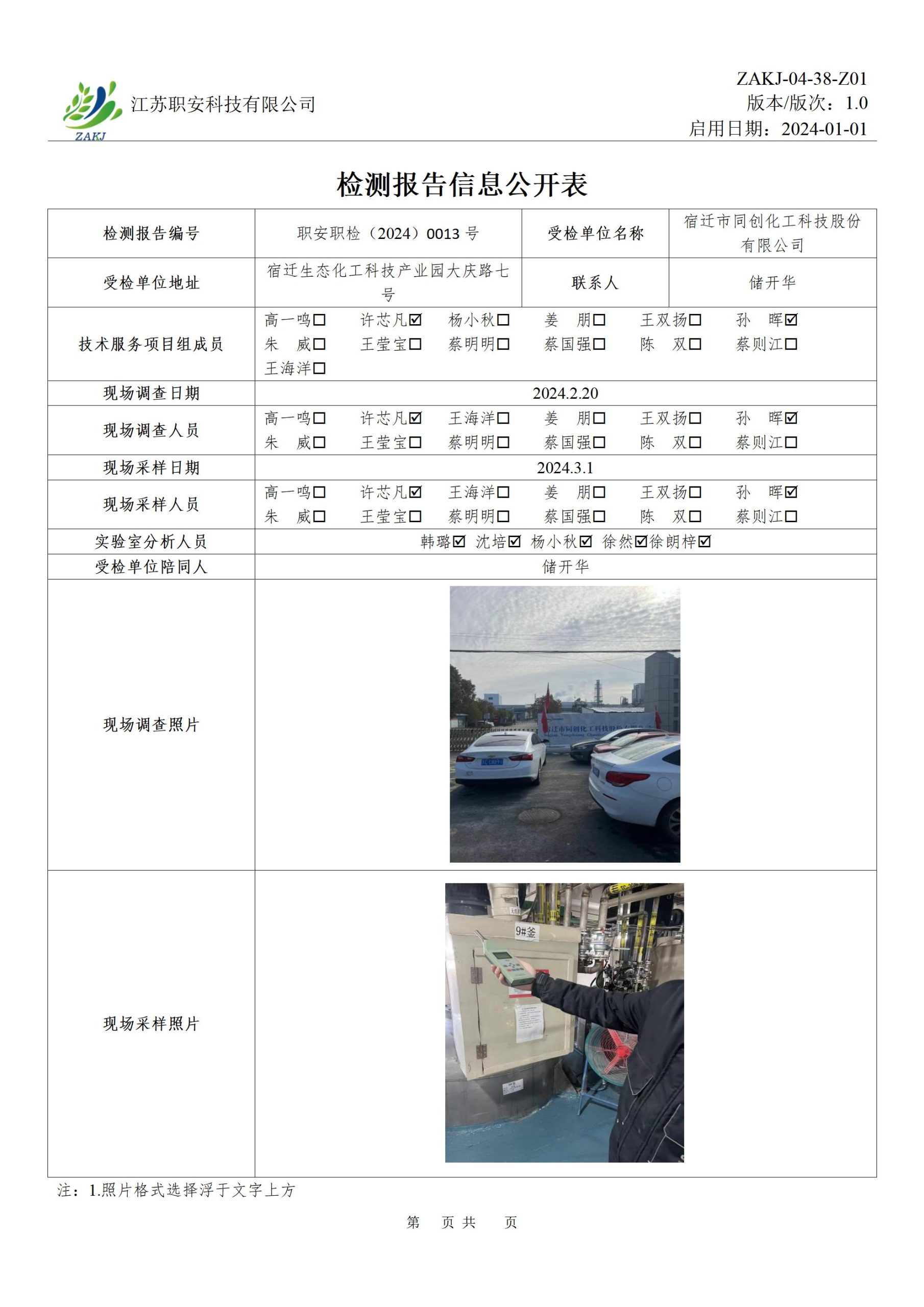 檢測報告公示