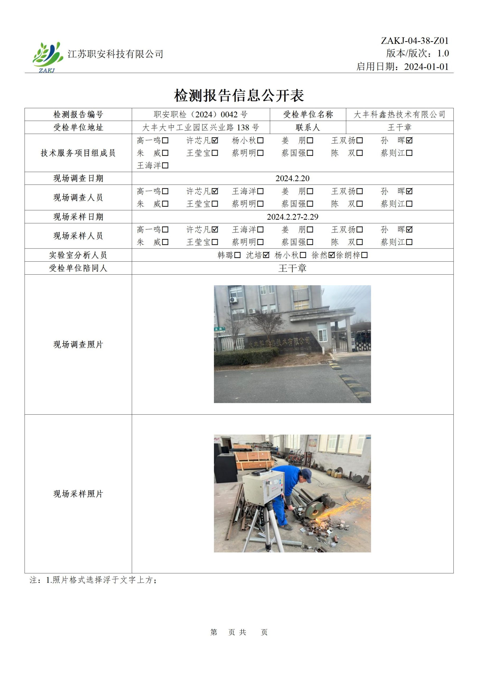 檢測報告公示