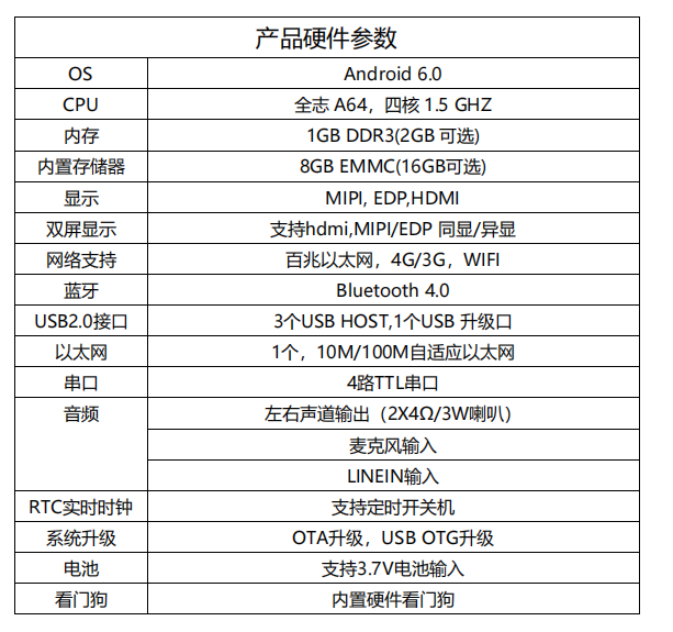 | CPU | 全志 A64,四核 1.5 GHZ |